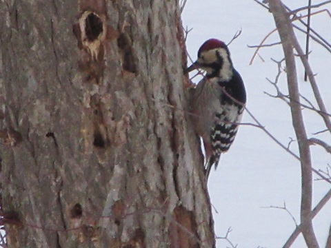 なかよし広場周辺、加圧場跡周辺と神社周辺です。 しかし、積雪のため、なかよし広場の奥には行くことができませんでした。 この周辺でまったく野鳥の声がせず、積雪のせいかと思ったら神社近くで群れで見られました。 それは悲しいことにこの周辺で餌付けされているようで、アカゲラも雪の地面で採餌していました。 ![]() |