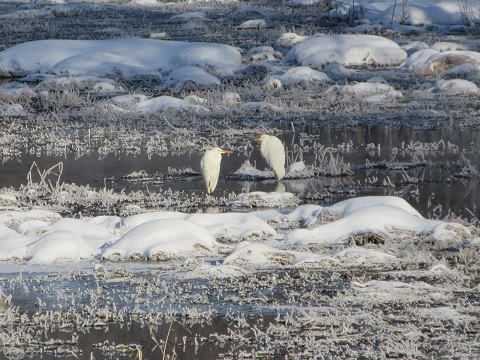 朝の郊外の美々方面がメインです。 大雪があり、その後もマイナス気温のため、鳥見のための場所が限られてしまっています。 オオハクチョウは群れで市街地の千歳川で見られました。 ダイサギは美々川です。 ![]() |