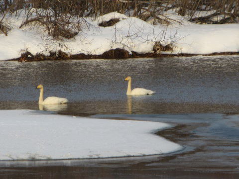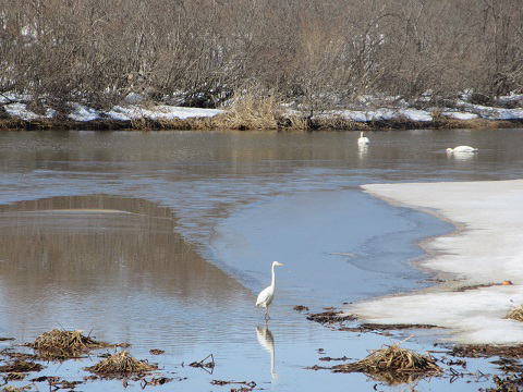朝の勇舞公園がメインです。 暖かくなり、雪解けも進んだせいでしょうか、水面が増えてきました。 しかし、カモ類はマガモとコガモのみでした。 ![]() |