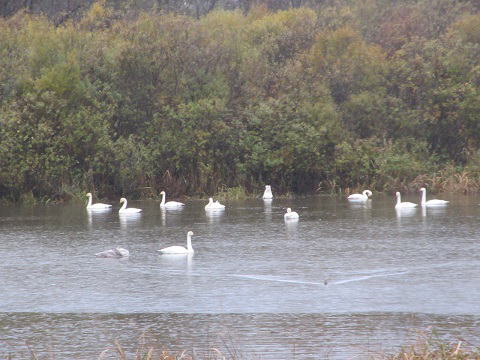 | 1. オオハクチョウ 5. ハシボソガラス 2. マガモ 6. ハシブトガラス 3. コガモ 7. ツグミ 4. トビ 8. スズメ |