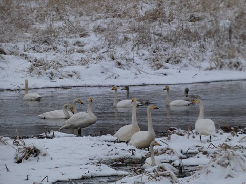 長都沼自体にはオオハクチョウの群れと若干のカモ類でした。