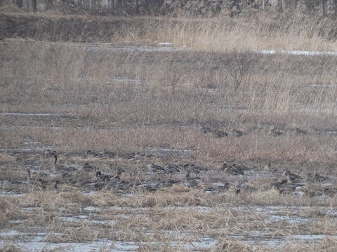 しかし、ヒシクイは新たに水面が広がっていた草地に100羽ほどのヒシクイが見られました。